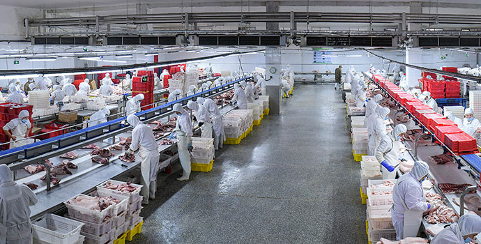 生產設施的標準化是企業健康、快速發展的保障。公司生產設備設施配套完善,現有生產車間20000余平方米,配套排酸間,冷凍,冷庫22000余平方米,日產能達到10000頭。